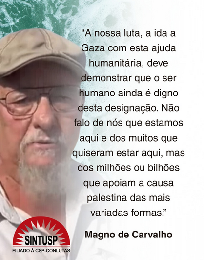 Vamos a Gaza com um compromisso assumido de forma muito discutida e consciente: não pararemos quando os sionistas, de seus navios, gritarem “Stop!”. Só responderemos se nos atacarem ou invadirem nossos barcos, porque nosso objetivo é chegar a Gaza com as nossas — não muitas — toneladas de alimentos e medicamentos e abrir um corredor marítimo para que muito mais ajuda humanitária necessária chegue a este povo, que sofre um genocídio cruel, com bombas e com a fome usada como arma de guerra, matando crianças, mulheres e homens diariamente diante dos nossos olhos.