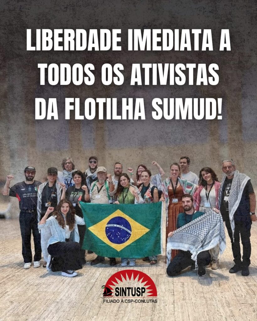 Exigimos a libertação imediata e o retorno seguro de todos os ativistas presos. Rechaçamos com veemência o ataque covarde contra a Global Sumud Flotilha, símbolo da solidariedade internacional com a resistência palestina.