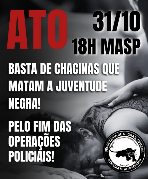 Por isso, vamos às ruas no dia 31/10 às 18h no MASP exigir o fim das operações policiais e gritar por justiça para todos as vítimas da violência do estado.