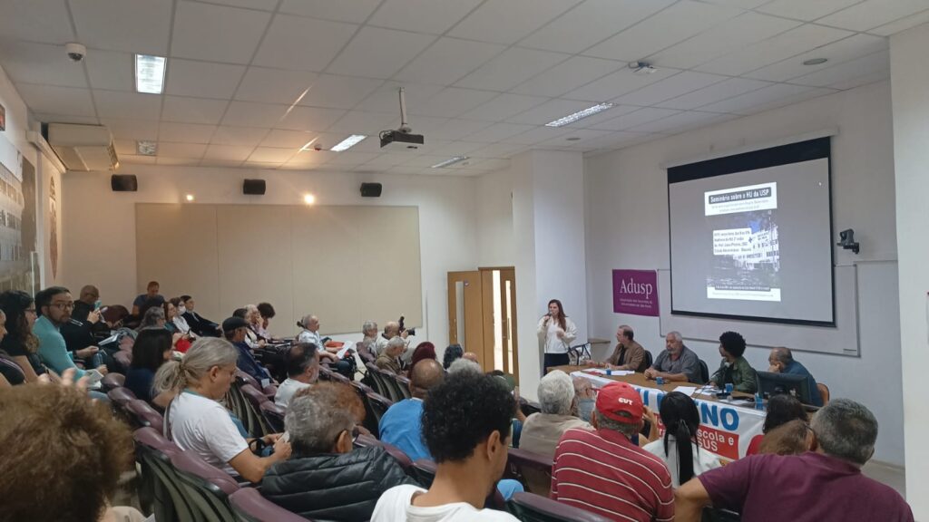 No último dia 11 de novembro, no auditório do HU, mais de uma centena de pessoas se reuniram para debater a defesa do Hospital Universitário. O seminário aprovou uma carta compromisso a ser entregue aos candidatos a reitores da USP para que se comprometam com o Hospital e parem do desmonte do HU. Dentre os principais pontos da carta estão: