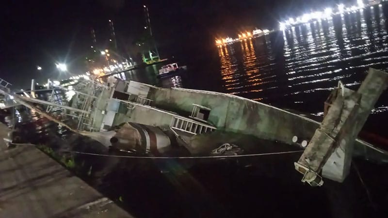 Após quinze anos de abandono, no dia 13 de março de 2026, o navio afundou parcialmente, adernando e ficando inclinado no cais de Santos.